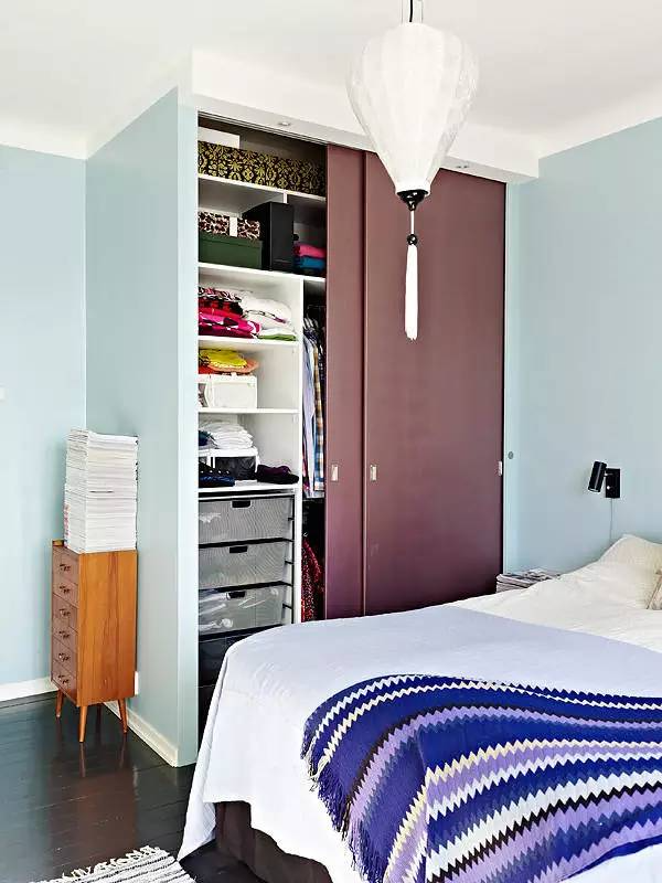 在衣柜侧面死角架起搁板,存放不常用的棉被围巾毛巾