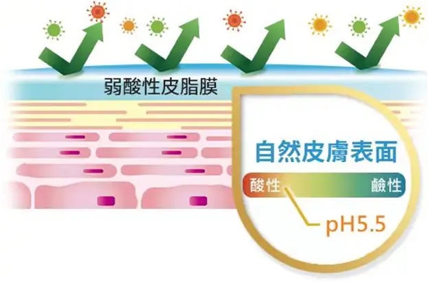 皮脂膜的的pH值一般维持在4.5-6.5左右(平均5.5)。