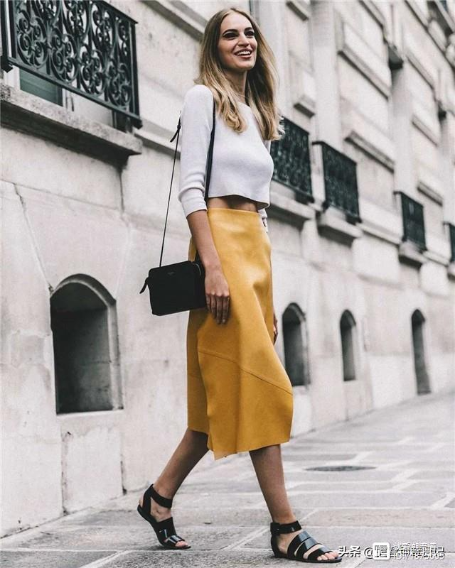 上短下长字面上的意思就是上身穿短款的衣服,搭配下身长款的衣服,其实大家在穿搭的时候,不能仅仅凭借字面上的意思进行穿搭。“上短下长”最简单的解释就是短款上衣搭配长款下装,也可以说是高腰线的重要性。无论是穿件短款上衣搭配长款下装,还是穿件中长款上衣搭配长款下装,亦或者是连衣裙,记得一定要正确地划分出高腰线的位置,使得上下身的身材比例一定要好。