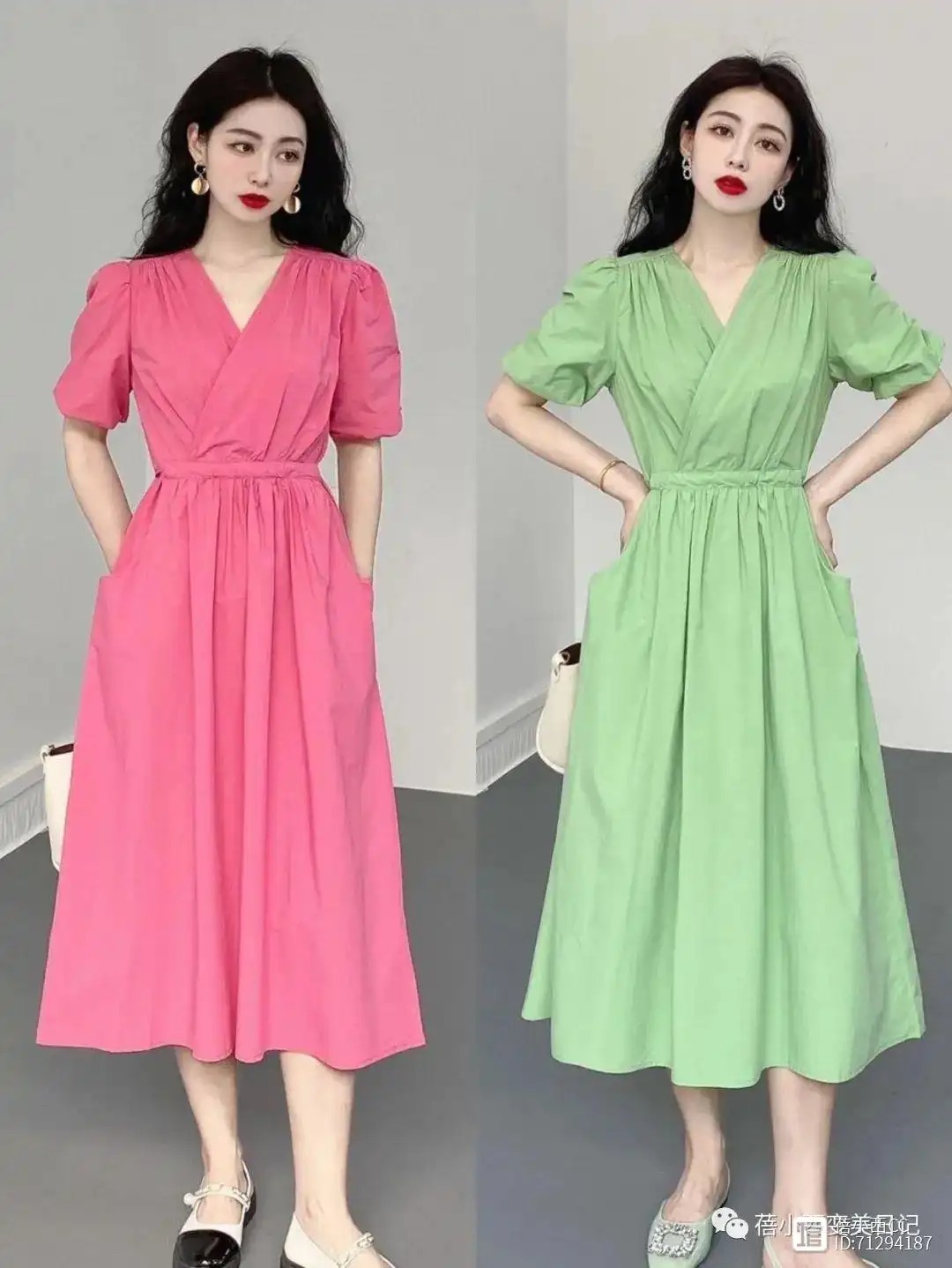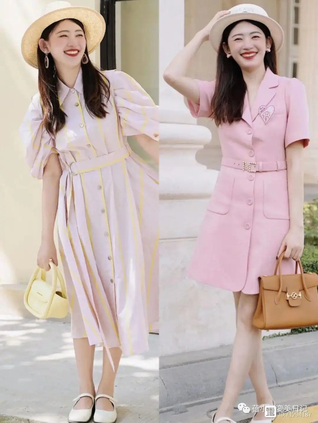 彩色连衣裙就不同于白色的清淡,多了几分时髦度。你可以选择自己比较喜欢的配色,这样会让你的心情更愉悦,但同时也要结合自己的实际情况考虑,以免穿出翻车的效果。比如玫粉色连衣裙,可爱温柔、女人味十足,但对肤色有一定的要求,如果你是黄黑皮,那么绿色系的连衣裙就会更适合你,因为绿色不仅能塑造出“冷白皮”的感觉,还会舒缓视觉效果。