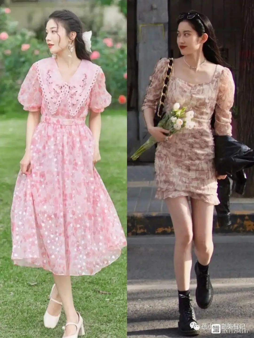 碎花连衣裙的出场率在春夏季节最高,可爱温柔的碎花元素会满铺在连衣裙的裙身中,从而丰富整个造型的时尚感,还能提升女人味。粉色系碎花裙对气质要求较高,容易显老,相比较而言,我更建议大家入手裸色系的碎花裙,与薄纱质地结合后就能避免土俗气质,还会注入朦胧浪漫的美感。
