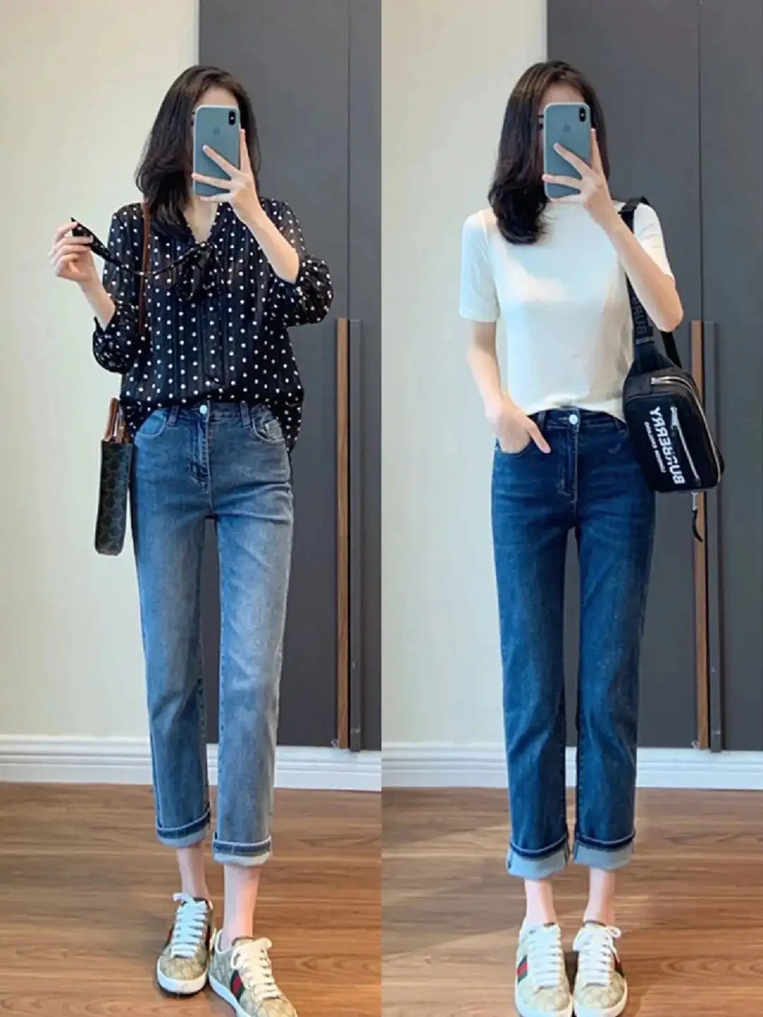 如果你喜欢这类风格,推荐选择女人味十足的修身衬衫搭配修身九分牛仔裤,也可以选用五分袖长的紧身针织线衣搭配修身九分直筒牛仔裤,这两套造型是精致类风格的典范,喜欢的姐妹照搬照抄完全不会出错,甚至绝大多数情况下,会超越其他日常风格。