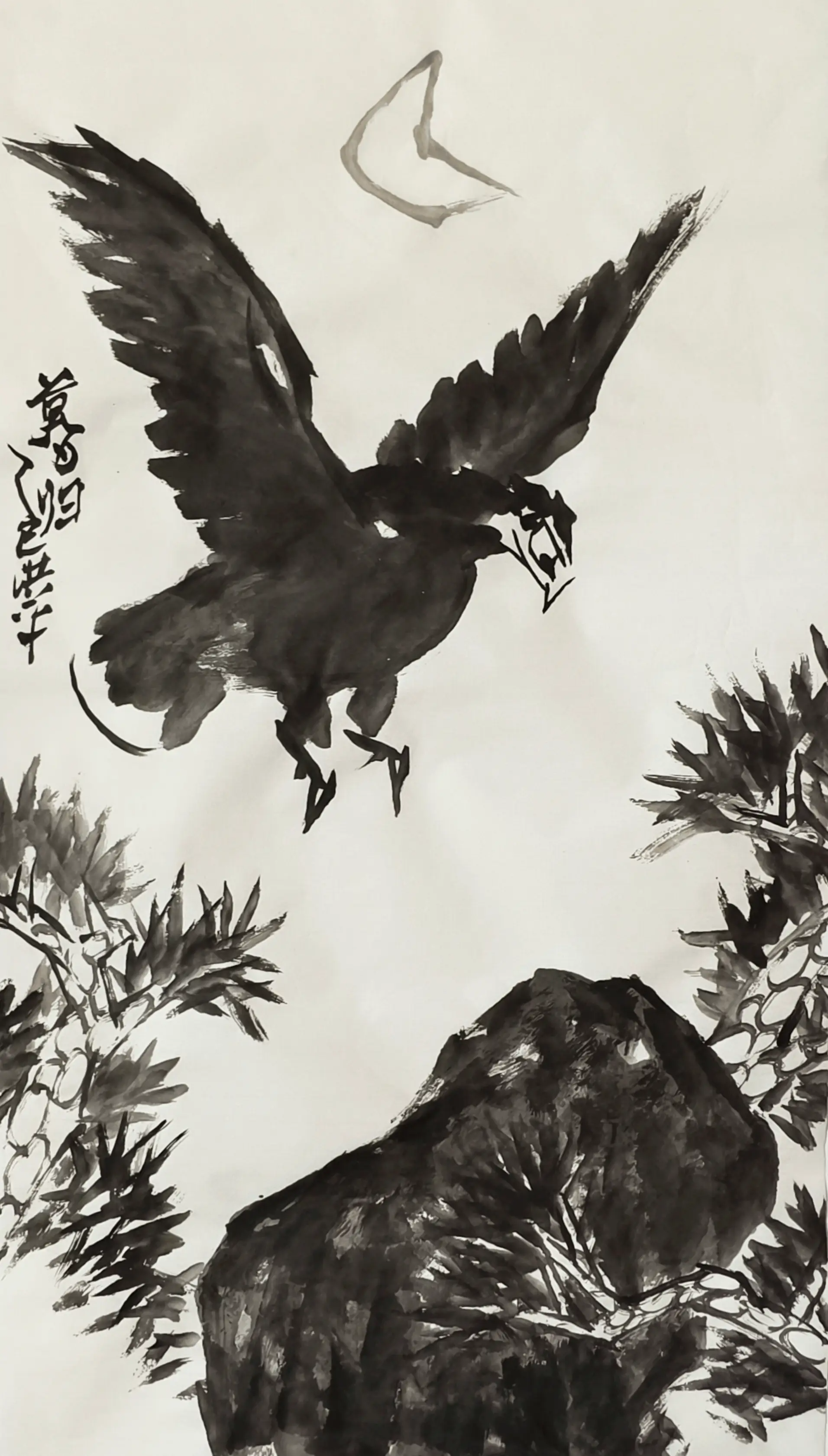 于中国画创作而言,笔法之轻重缓急、墨色之浓淡干湿、物象之形态状貌与结构比例,并置于一纸,便自然构成矛盾冲突。作者务必精心经营,巧妙运用笔墨语言,使诸元素和谐共生,最终实现画面的变化统一。而最高级的和谐,并非静止的均衡,而是一种“充满内在张力的动态平衡”。正如怀素狂草,于笔画的极致飞动中,依然坚守着全篇重心的稳定,这正是“一阴一阳之谓道”的哲学在艺术上的完美体现。例如:
