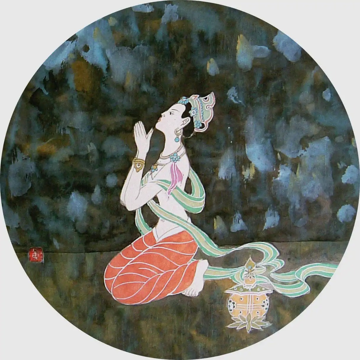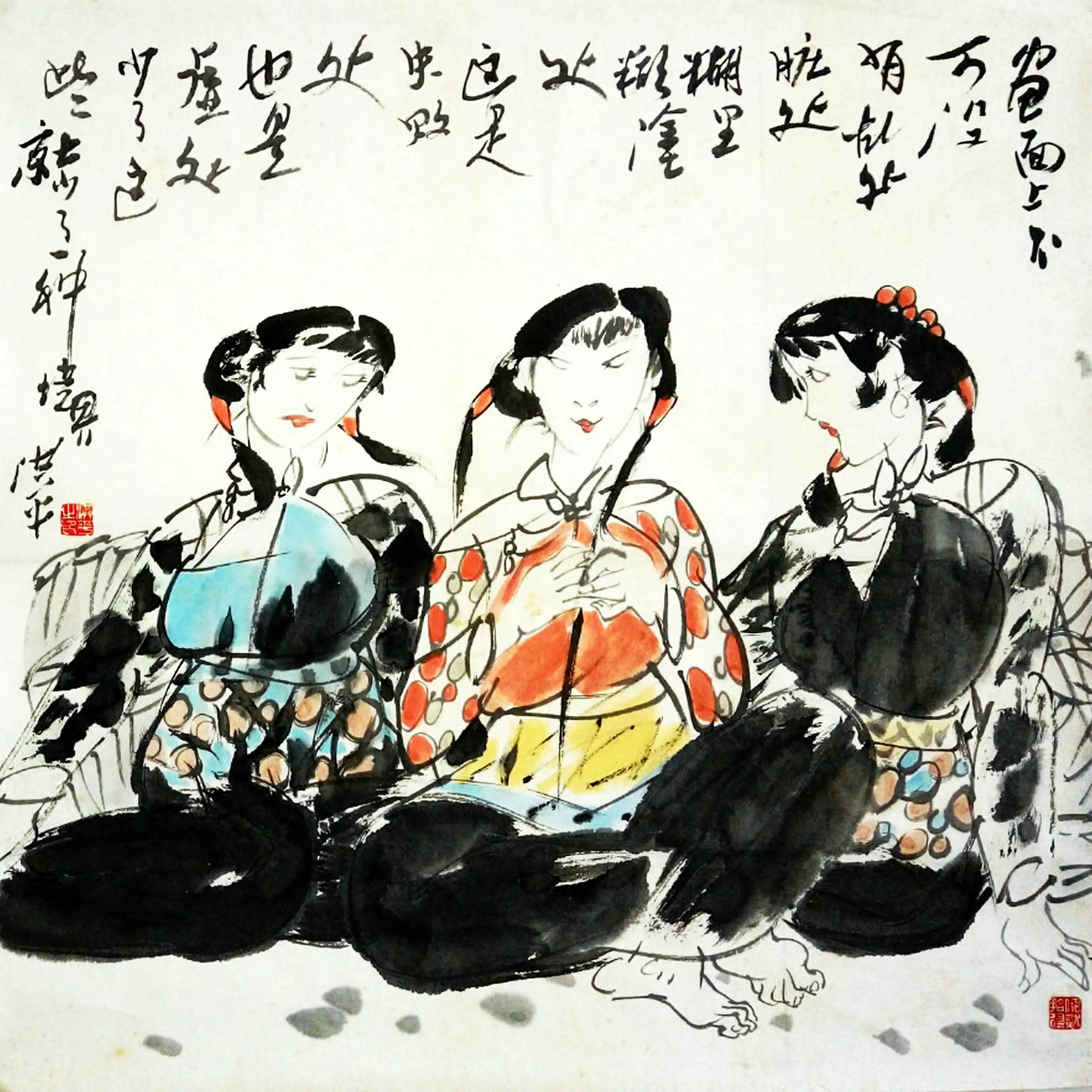 4. 色彩强烈、笔墨恣肆之作,冲突激烈,不易调和。可设“缓冲”地带,使过渡自然,既保有视觉冲击力,又不失整体和谐。