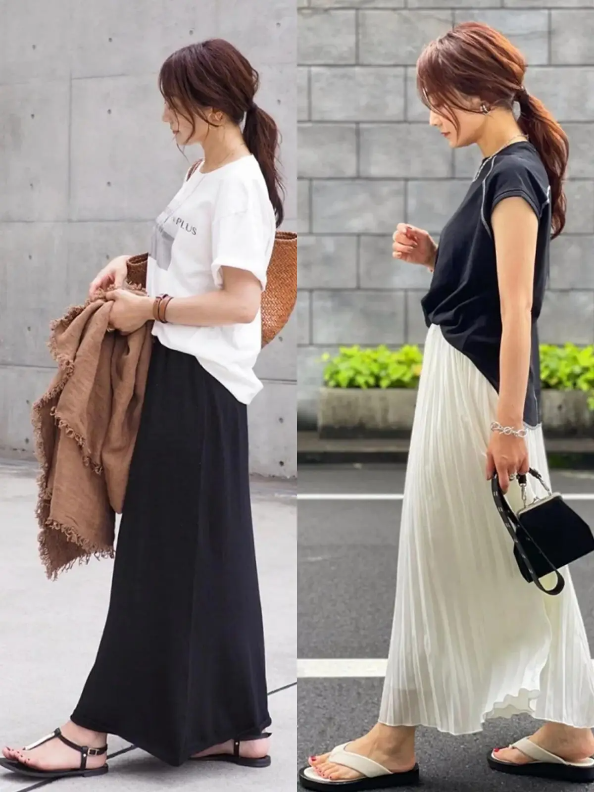 白色的衬衫+白色的半身裙,再结合手提包,能够让风格看起来更时髦,而且这样的搭配没有违和感,反而会体现出高级魅力。