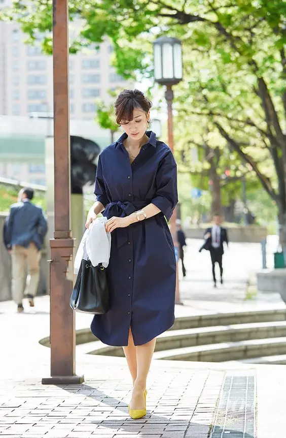 如果搭配连衣裙,可以选择腰带,来打造腰线位置,这样去结合连衣裙,搭配就可以呈现出明显的身材比例,让穿搭看起来显高又显瘦。
