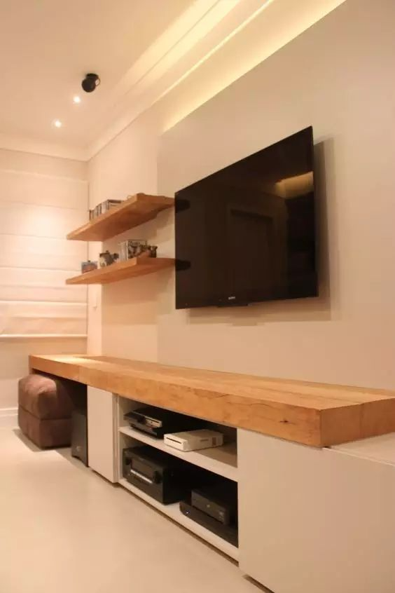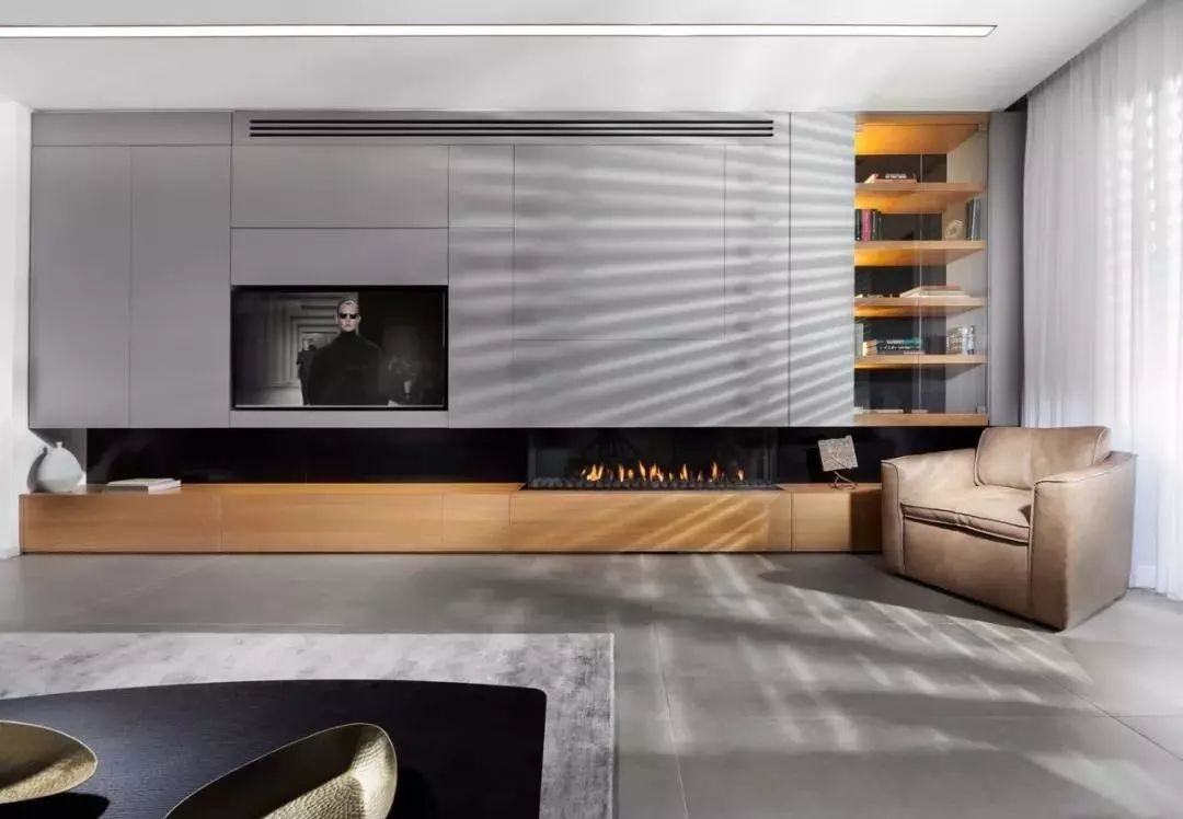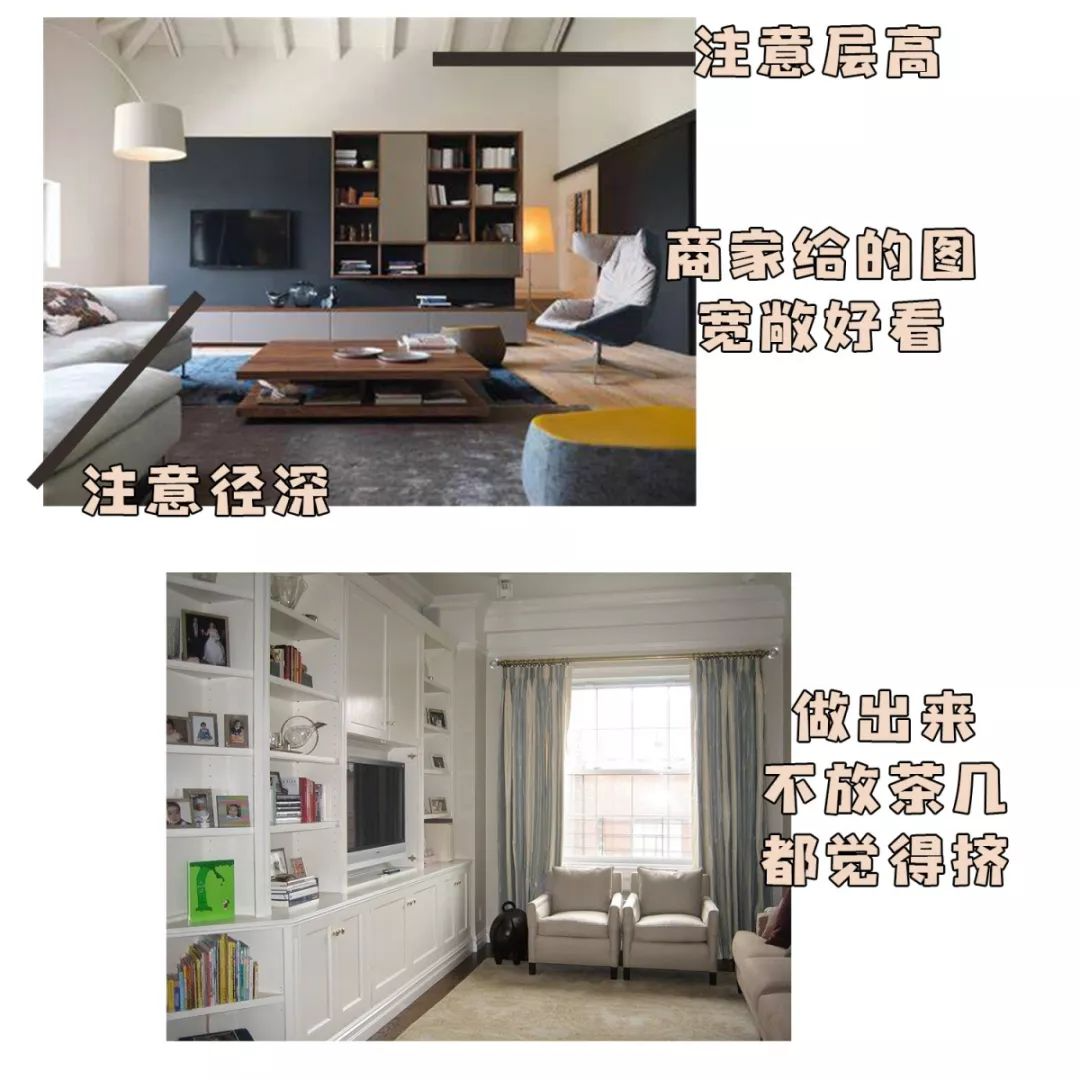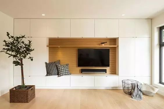 上图的这种电视组合柜只想着做收纳,而忽略了客厅的空间感。并且电视和柜子之间虽然尺寸刚好,却给人一种电视装在盒子中的感觉,很不舒服。