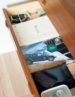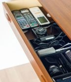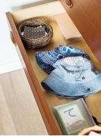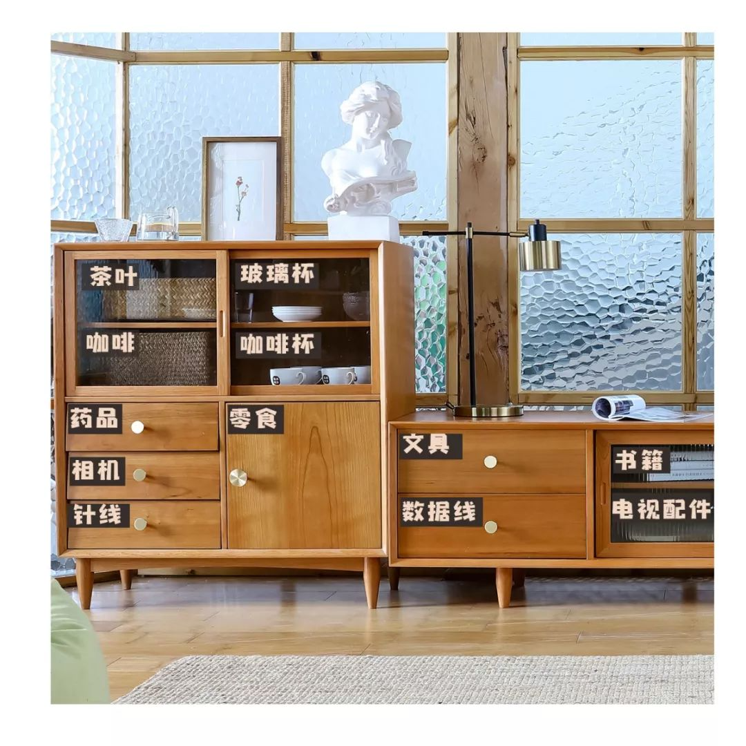 可以将常用品都集中收纳在收纳箱里,如DVD, 电脑硬盘,儿童护理物品,胶布等小工具,并在收纳箱左上角统一贴上标签用以区别,这样从外观开起来非常整洁。如果电视柜是拉门式的,建议把使用频率较高的物品摆放在电视柜的外侧(即两端)。这样在拿东西时,就可以使电视柜拉门的开合距离达到最短。