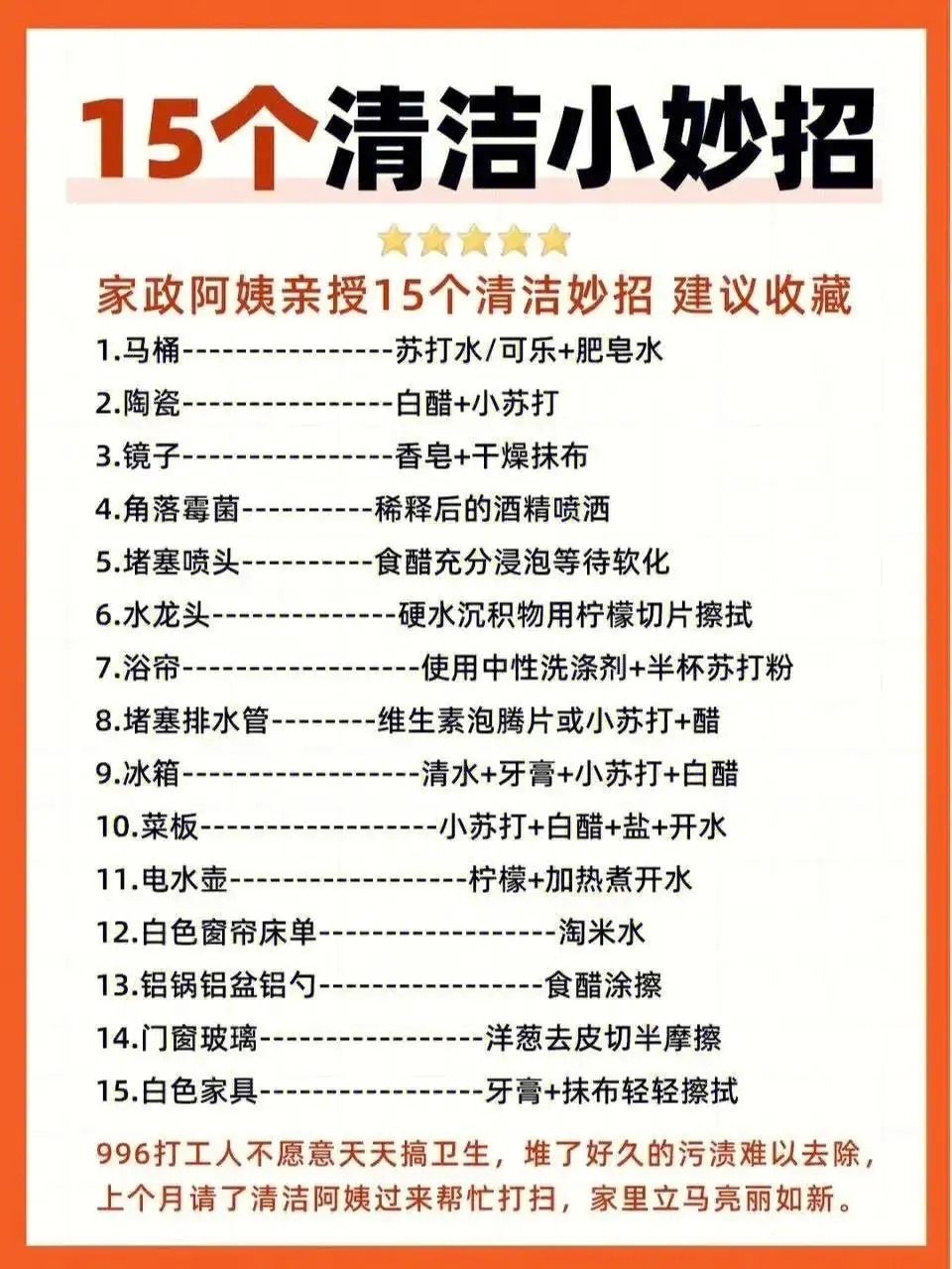996打工人不愿意天天搞卫生,堆了好久的污渍难以去除,上个月咬咬牙请了清洁阿姨过来帮忙打扫,家里立马亮丽如新。阿姨还偷偷亲授了一些清洁小妙招,看到就是赚到!