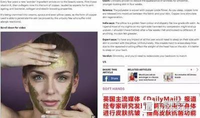 2015年的《每日邮报》报道称,专家研究发现,铜离子可以进行皮肤抗皱,刺激皮肤细胞再生,提高皮肤抗菌功能。