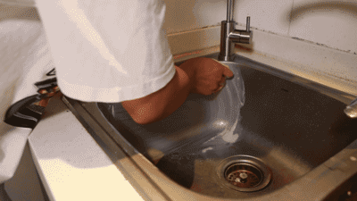 把小苏打粉均匀的撒在水槽和排水孔四周,静置几分钟。可以用旧牙刷或百洁布沾上水,仔细擦洗水槽,擦完后像崭新的一样!