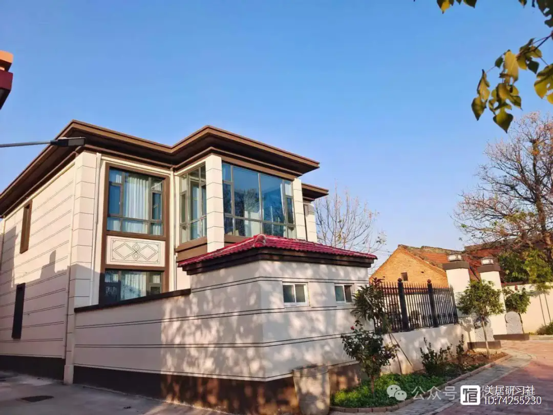 局部屋檐线、窗套线则巧妙地用咖啡色水包砂进行点缀,与主色调形成了和谐的对比,增添了房子的层次感和立体感。