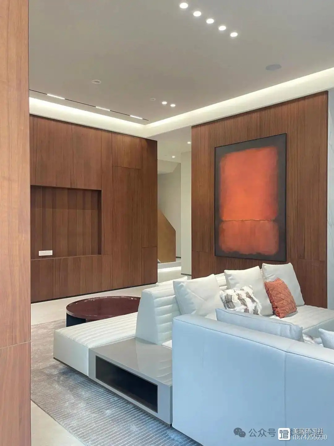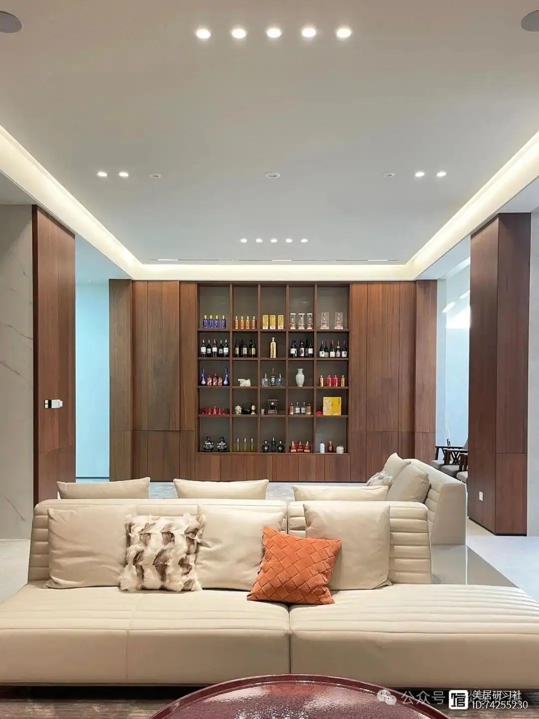 温润的胡桃木家具散发着淡淡的木香,与米白色的乳胶漆墙面相映成趣,营造出一种温馨而雅致的氛围。