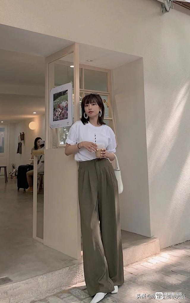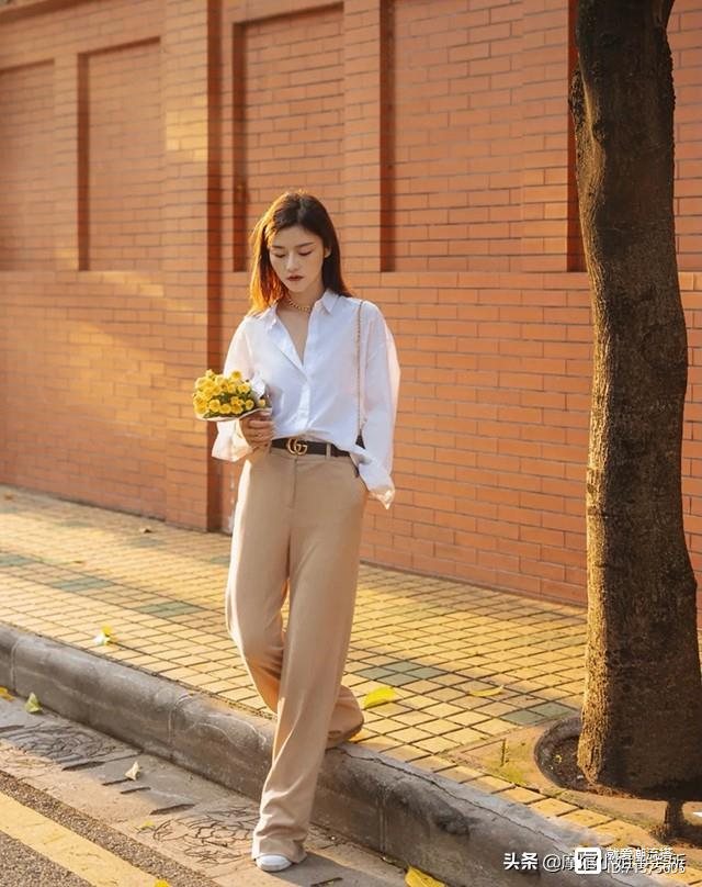 阔腿裤搭配纯色衬衫。这样的搭配中规中矩,但是胜在不会出错。特别适合学生党或者初入职场的新人,穿上显得简单干净,还特别舒服。