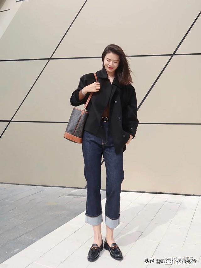 ②阔腿裤搭上乐福鞋,时髦度立马提升一个档次,满满的高级感立刻凸显出来!