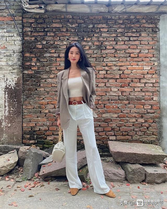但是过长的阔腿裤,选得不好,则有可能变成翻车现场。一直到脚踝的阔腿裤,远远看过来腿仿佛奇幻般的少了一截,越过脚踝拖地的裤腿还容易显得邋遢。