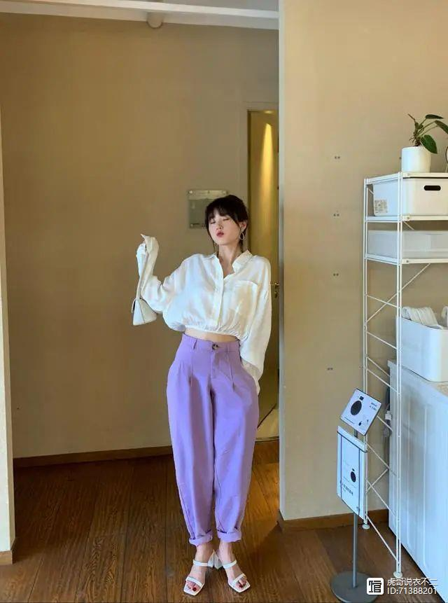这一个技巧相信大家都非常熟悉了吧,其实我们真实的身材比例是没有办法改变的,但是我们可以通过穿衣搭配改变身材在视觉上的比例。比如说穿高腰的裤子或者是短款的上衣,营造出一种上半身短,下半身长的视觉效果,这样一来,我们就可以轻松拥有大长腿了。