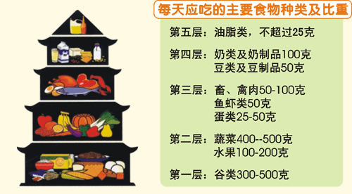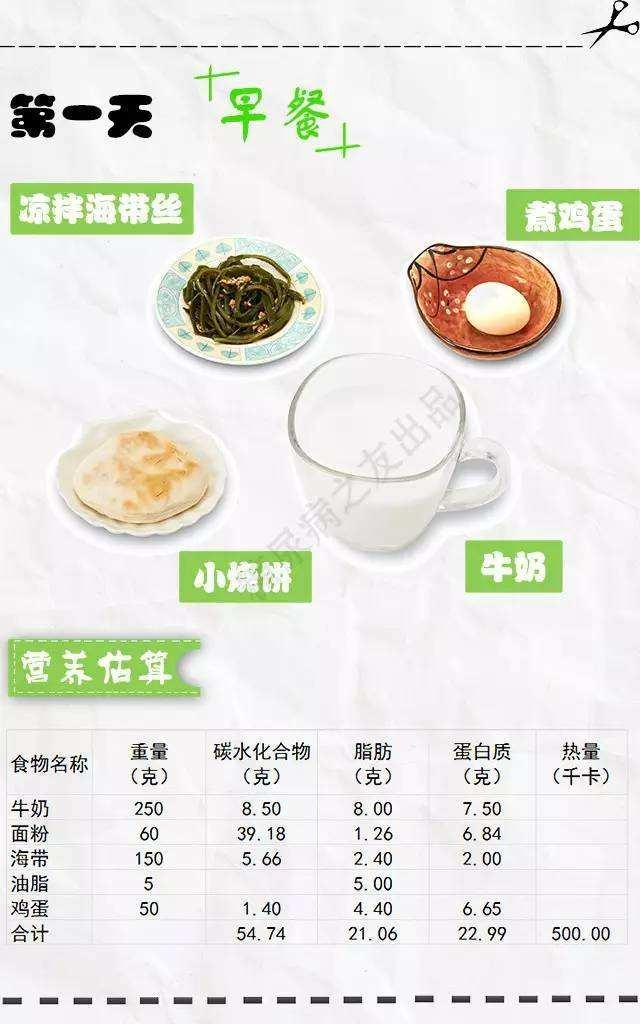 5、每天五份蛋白质:一个鸡蛋,一杯牛奶或豆浆,一碟鱼或虾类、贝类,一碟肉,一碟黄豆芽或豆腐。