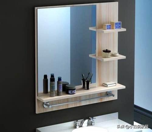 如果家里的洗漱用品不多,其实是可以不用设计镜柜的,只要在镜子的前方装一个置物台就可以了,足够放置两到三人的洗漱用品。