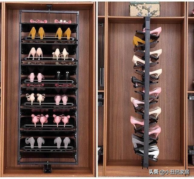用旋转鞋架代替传统的鞋柜,即使是通顶的大鞋柜,也没有旋转鞋架实用,因为它能完美利用360度空间,没有浪费,比传统的鞋柜,利用率要高得多。