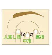 然后,从眼睛的中间开始贴,然后是眼头,最后是眼尾。 刚贴上的时候很容易脱落,所以要用手指轻轻按住(食指、中指、无名指)。