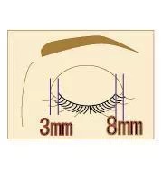 首先,把假睫毛剪短,比自己的眼睛宽短8mm左右。镜子放在桌子上倾斜45度斜着朝下(脸朝前方)。在假睫毛上涂好胶水。确认好眼头开始3mm和眼尾过来5mm空开的位置。