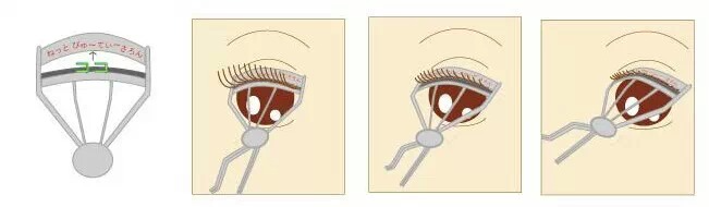 睫毛夹的上部对准眼皮部往上抬