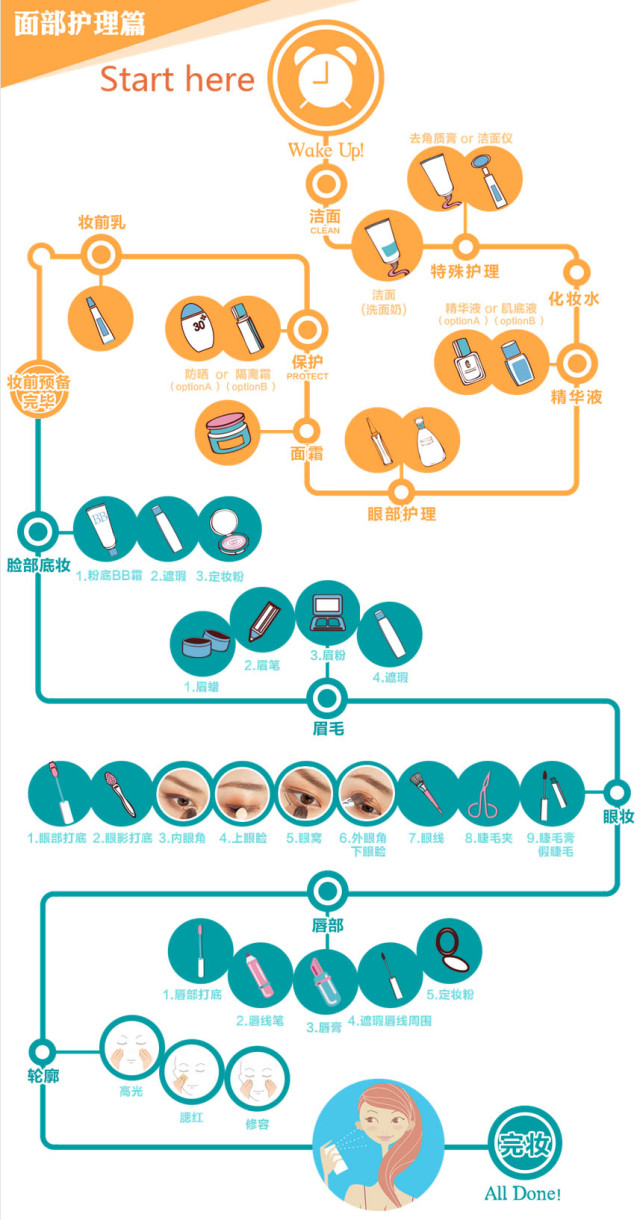 最后,跟童鞋们分享妆前护肤品先后使用顺序以及化妆的步骤,还处于迷糊状态的你赶快来学习一下吧!!!