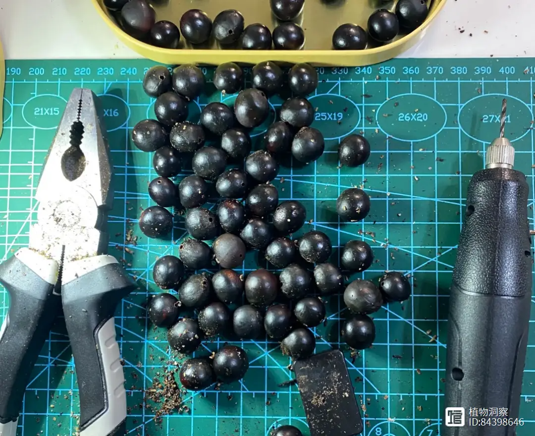 无患子的果肉可以制作手工皂、洗手液,它的黑色果核也不要浪费了。我们将它的果核收集起来,略微打磨就是天然的念珠原材料,可以用来制作菩提子。