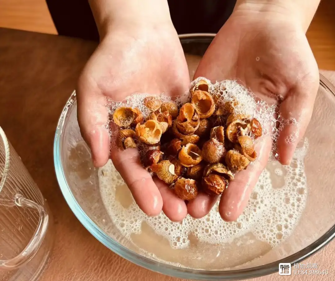 也可以加入皂基来制作固态的肥皂块,这样的纯手工天然肥皂,无刺激不伤手,因此无患子也广泛应用于化工领域。你像我们现在用的洗发水以及沐浴露中,确实都含有无患子的植物成分。李时珍在《本草纲目》里称赞它远胜于皂荚也。