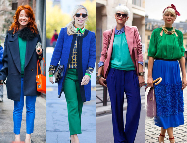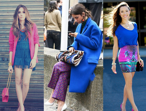 又是一组邻近色配色,相比蓝绿的现代感,蓝色搭配紫色/玫红更有妩媚的女人味。