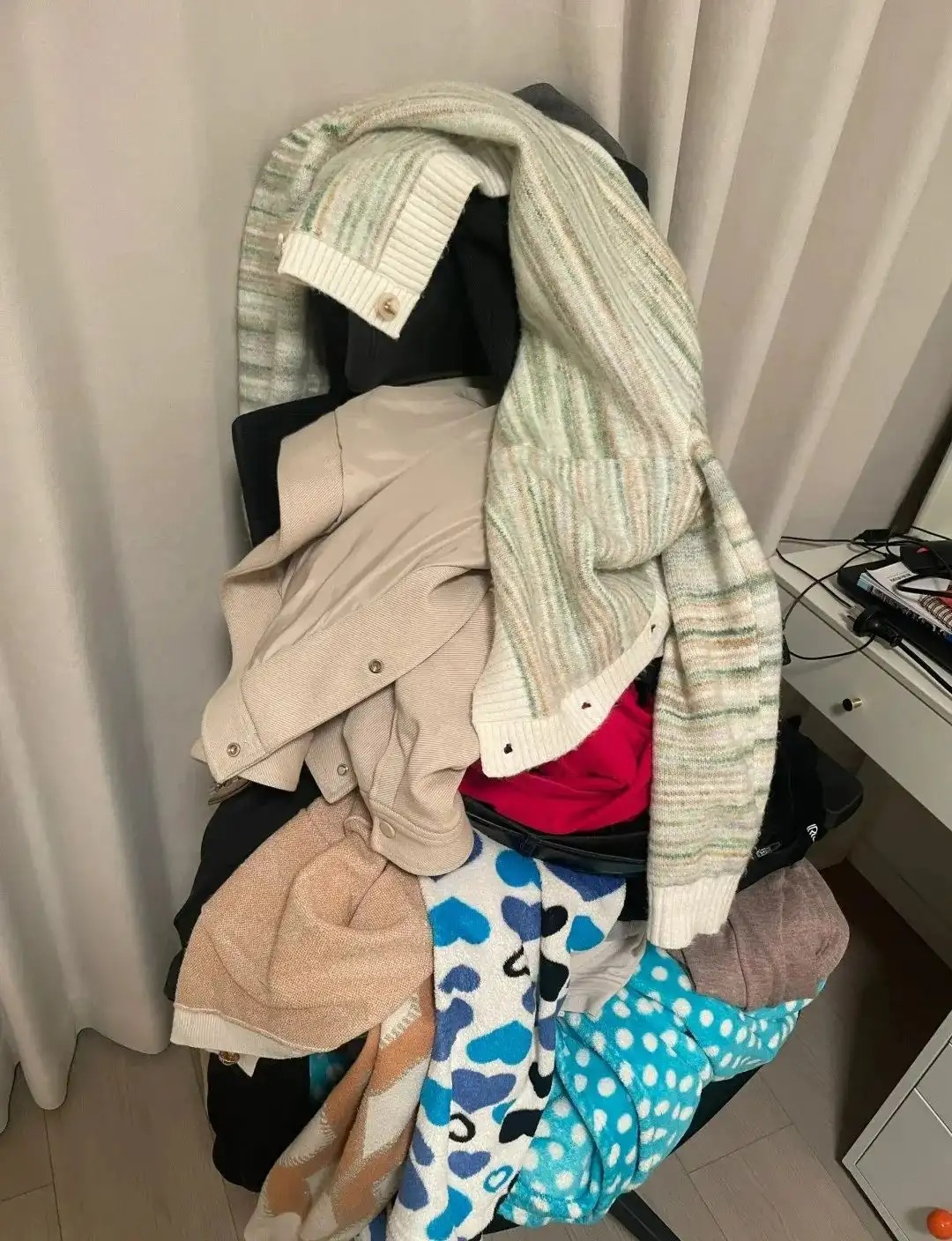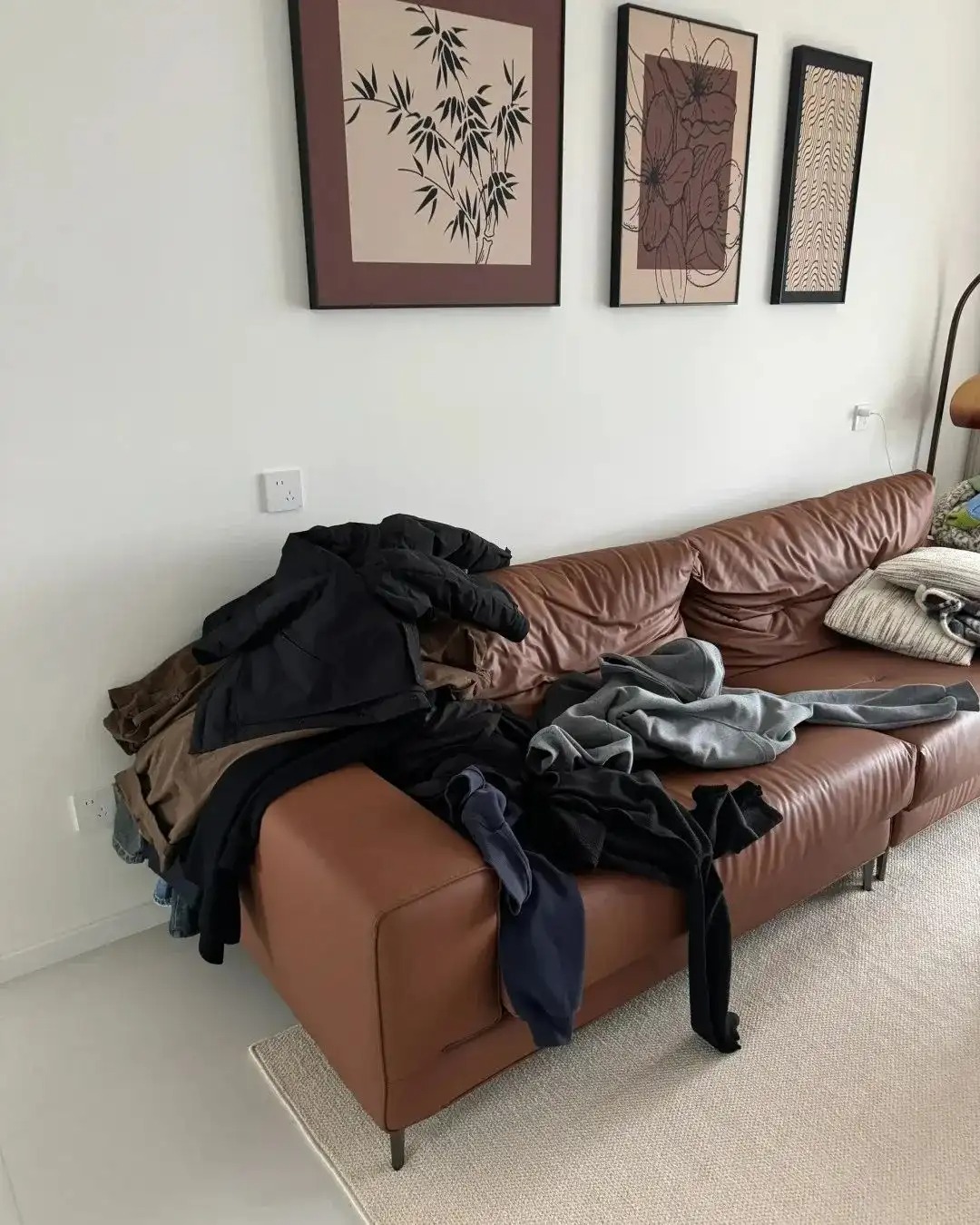 就像这位网友家,把次净衣服摆放在沙发上,沙发被堆得满满的,看着就是乱糟糟的一片。