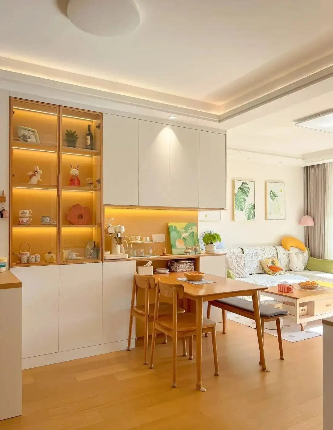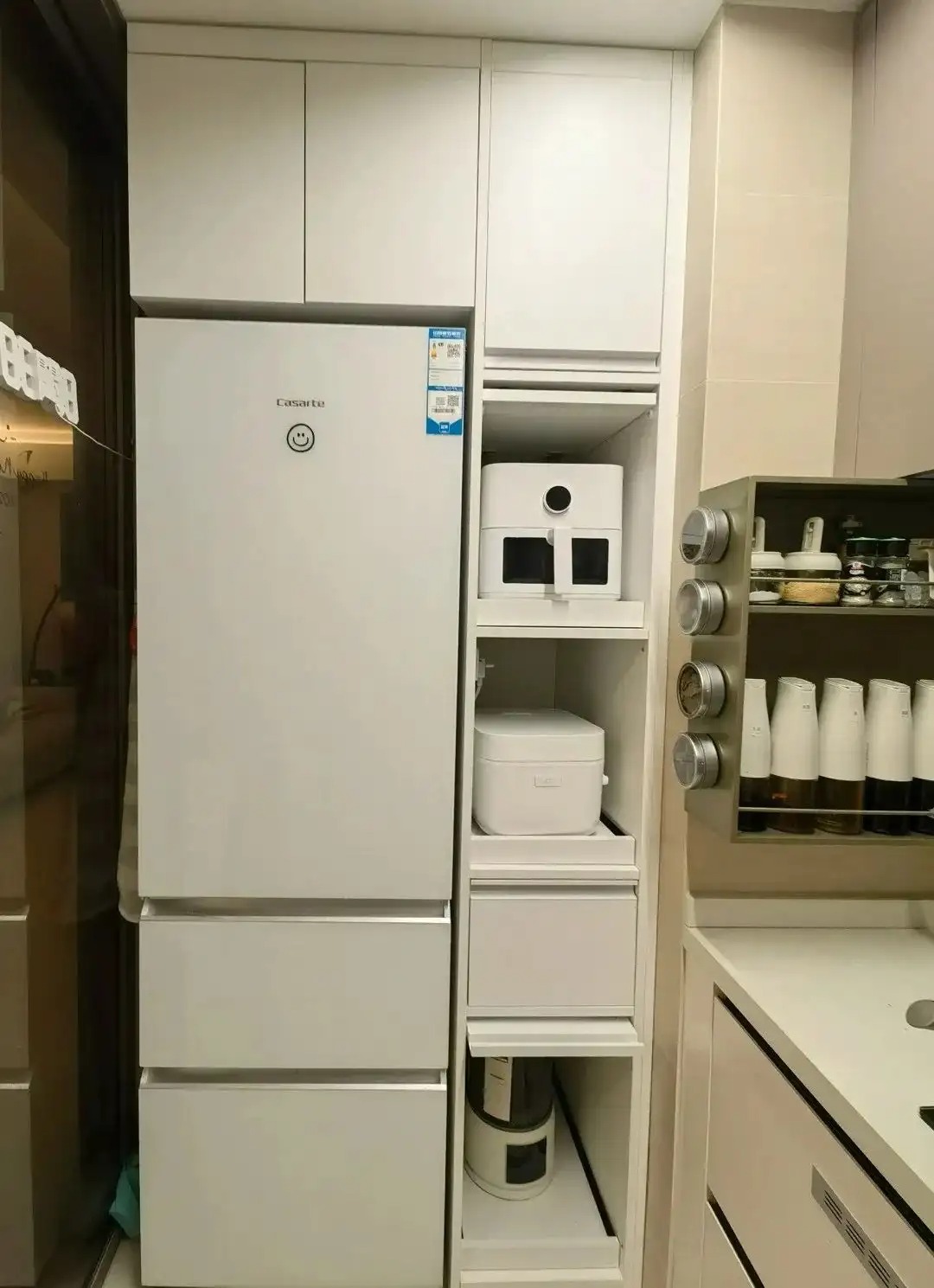 还没有装修的屋主,一定要听劝,定制柜子时要预留小家电收纳空间。在厨房或餐边柜,预留开放式收纳格,以摆放小家电。