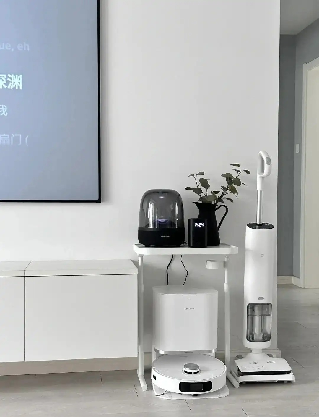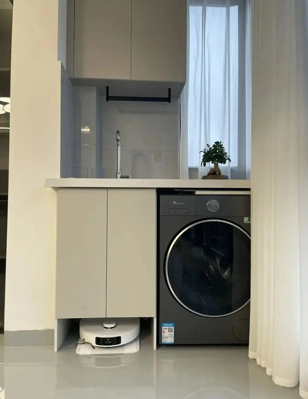 在阳台柜上,特别是洗衣机旁边,为扫地机器人预留小窝,轻松实现自动上下水。
