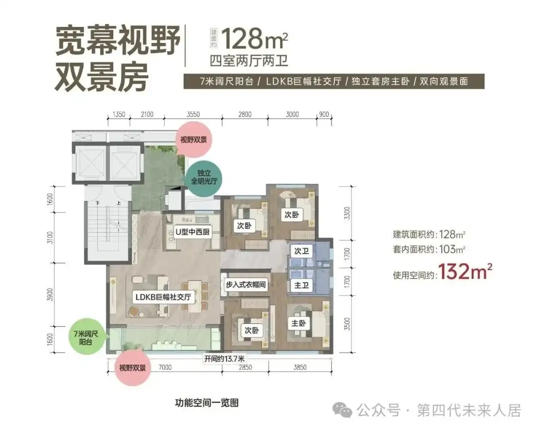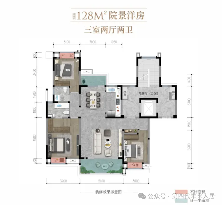 ✓ 空间效率:128㎡实现 143㎡的功能,得房率超 92%(含电梯厅)