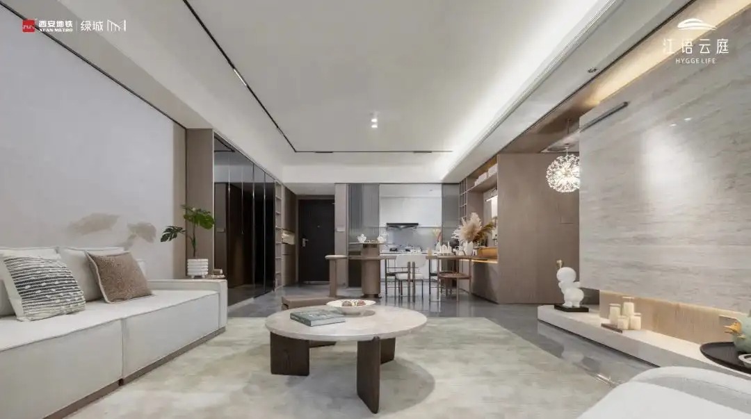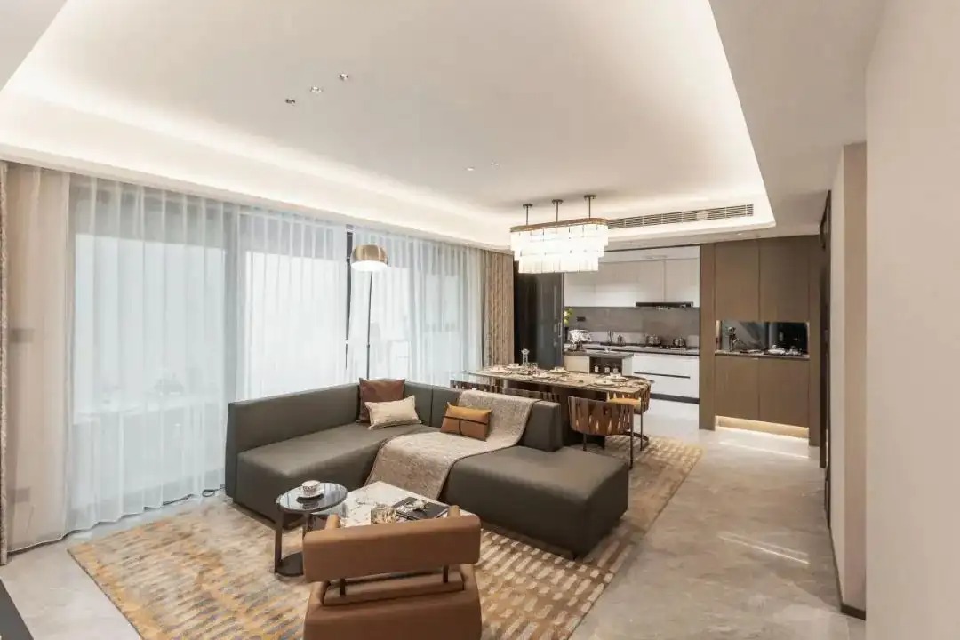 在空间设计上,采用 LDKB 一体化理念,将一线连贯的 U 型厨房、独立餐厅、超大客厅以及奢阔阳台完美融合,形成一个开放式的公共活动区域。在这个空间里,家人之间的互动交流更加顺畅,无论是烹饪美食时与家人的闲聊,还是在客厅招待亲朋好友,都能感受到宽敞与自在。