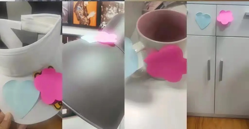收纳老师给了夫妻两人一叠蓝黄便签纸。蓝色代表先生同意放弃,粉色代表小艺的放弃。如果一件物品上集齐了两个颜色,便可以直接放弃。这个办法可以在最短的时间内让家完成“瘦身”计划。