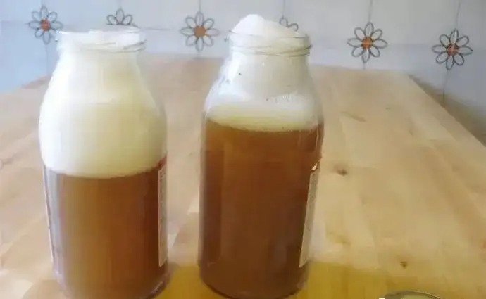 1、容器盛8分满无患子果皮后,倒入做好的环保酵素,没过果皮,泡3天过滤。