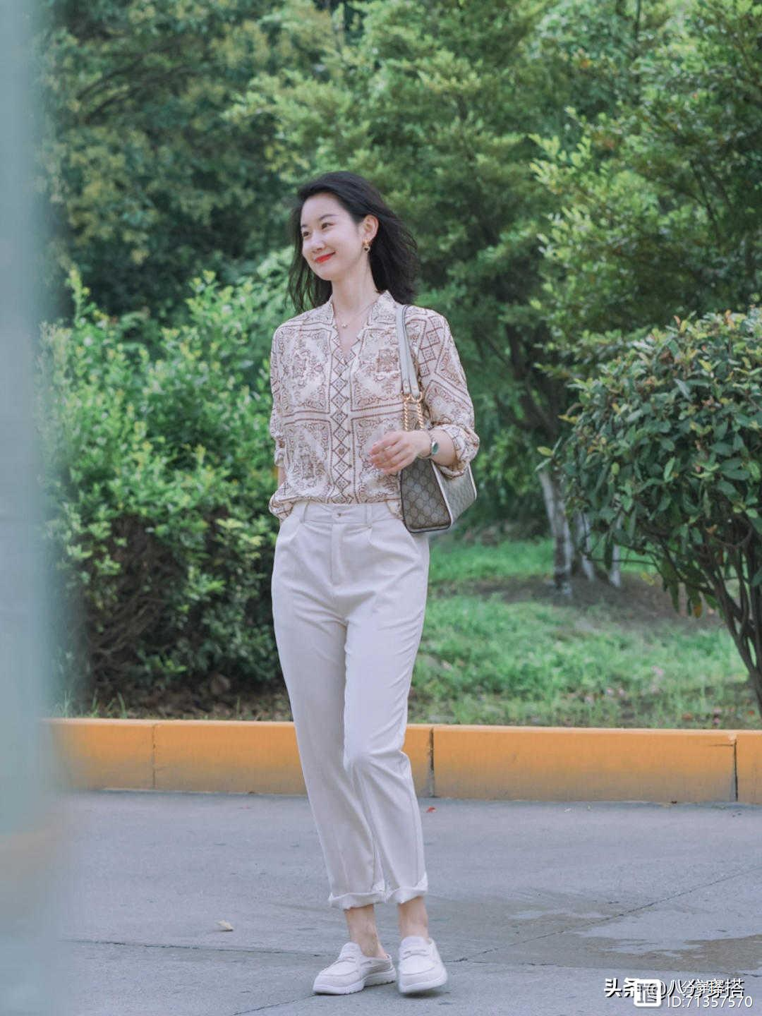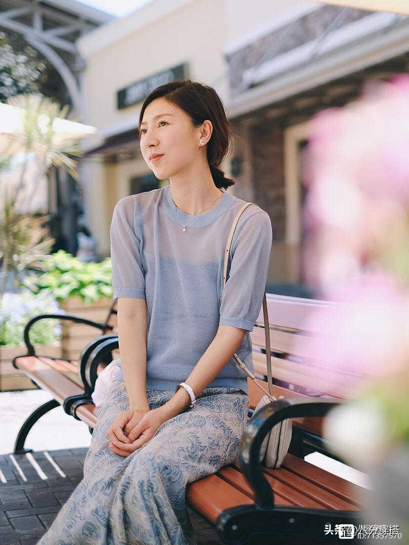 就像图片中的博主选择的雪纺衫是一个圆领设计,也是一个短袖的设计方法,能够给人一个很好的视觉效果感,又能给人一种非常清凉舒适的感觉。