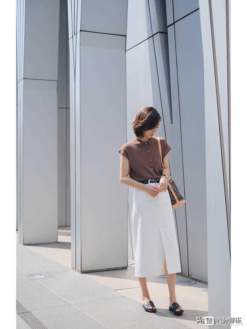 无论是衬衫还是半身裙的搭配衬衫看起来会略显暗沉一点,所以我们可以选用一个比较纯洁的纯白色来点缀,这样也不会觉得有视觉疲劳,或者是整个人看起来不精神的状态,这也就是颜色的一些搭配技巧。