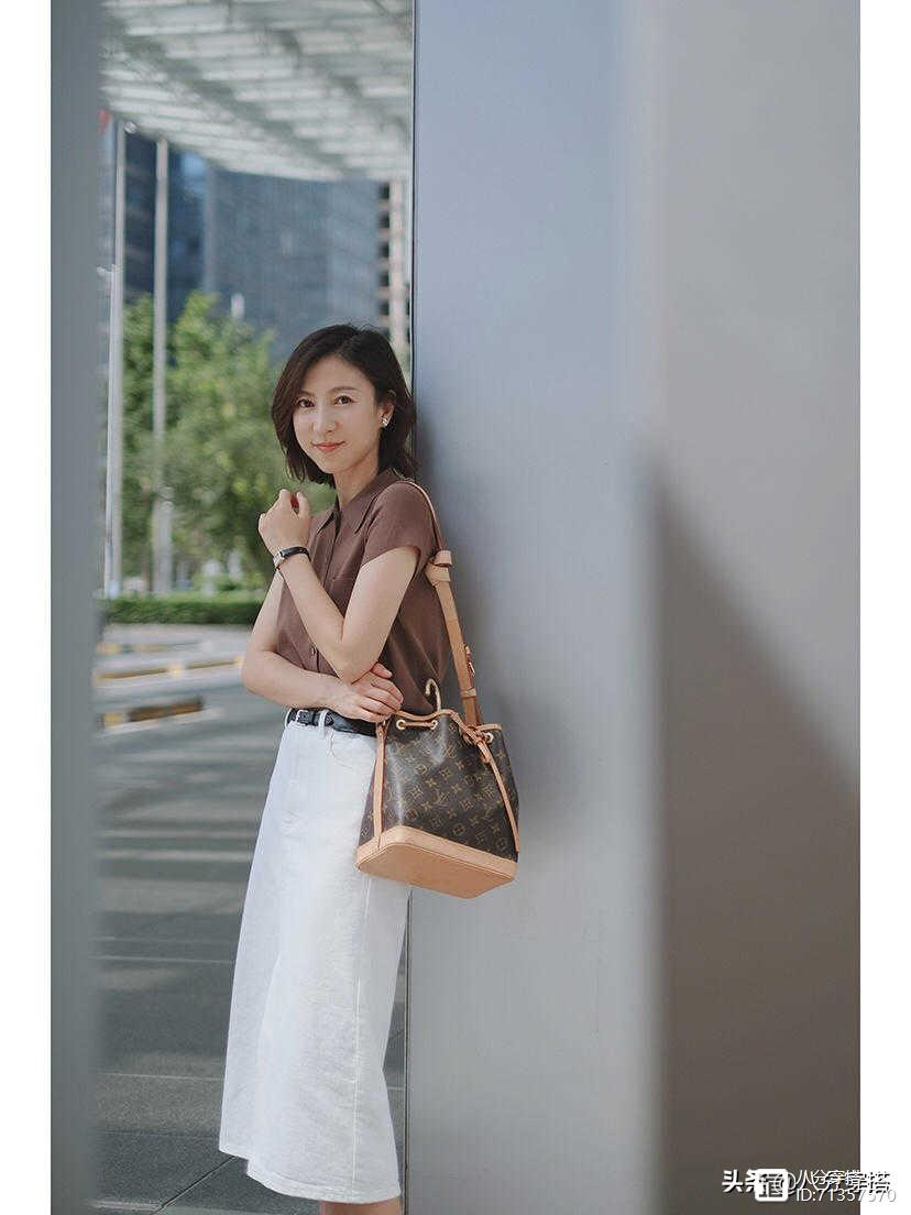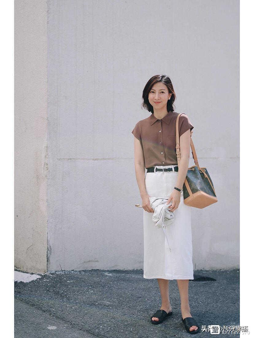 衬衫和半身裙非常的符合40多岁左右的女性,特别是由于腿部肌肉较大,或者是腿比较短的人都非常符合,而且这件衬衫的话,其实也是能够提高脖子的线条,无论是脖子短或者是脖子比较长,都能够比较符合的穿搭。