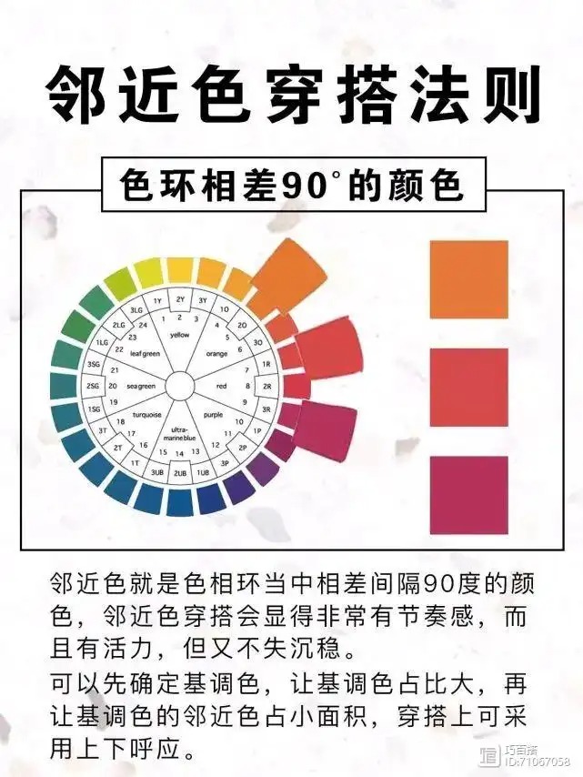 色环上位置毗邻的两个颜色,色系和谐又存在色差感,上身很容易就能穿出1+1>2的吸睛效果。