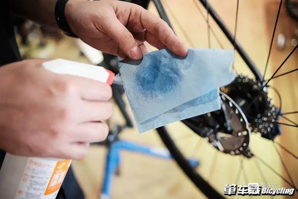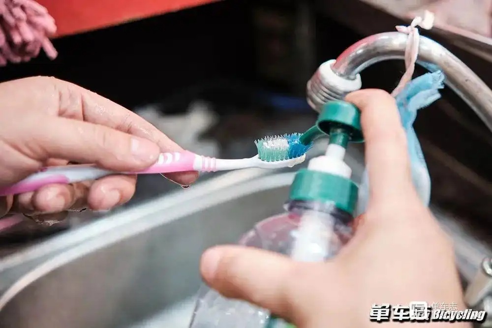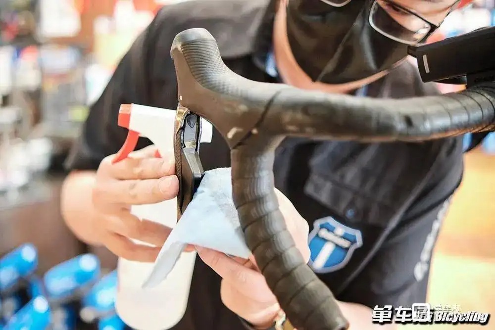 ▲擦拭刹变把手、手把带和握把套,将灰尘泥沙及汗渍擦掉。