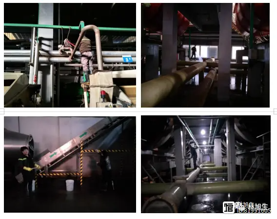以下是1月21-22日在HP水厂现场拍摄到的交接班时操作工人的卫生清洁图片(管道、划槽、打散鼓、转鼓下):