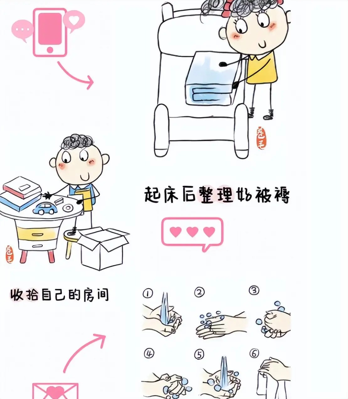 所以家长们,要适当让孩子做做家务,特别是床铺的整理和日常生活的物品归纳,让孩子把收拾养成一种习惯,让整洁、有序、爱干净成为他们的兴趣和生活。这样孩子才会越来越爱生活。