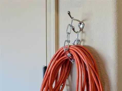 如果稍微比较大一点的电线,可以挂起来收纳。在合适的墙壁等位置安装一个挂钩,可以粘贴的那种,无需打孔。然后将线缆直接绕成圈圈(如果电线不长,直接挂也可以),挂在上面即可。