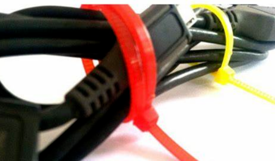 成捆的线缆,一定要用扎带扎紧。根据线圈的大小,间隔20-50厘米扎一根。塑料扎条很方便,很容易调节松紧,取下也很容易。