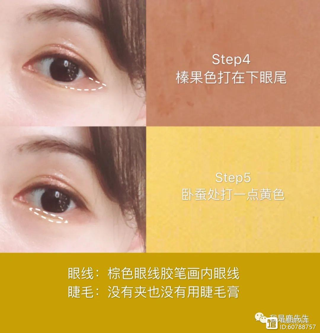 step1:黄色眼影打在眼窝,并且带到下眼部;