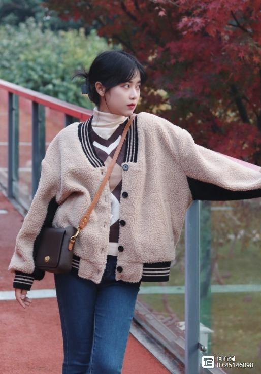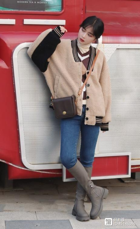 上面搭配了一件简单的羊羔毛外套,可以展露出休闲感,而且这件羊羔毛外套款式挺宽松的,这样一来就可以帮助我们遮住身上多余的赘肉,还很适合微胖身材的美眉。宽松外套也可以打造慵懒和随性的气质,很适合日常穿搭,建议大家可以在今年冬天入手一件。