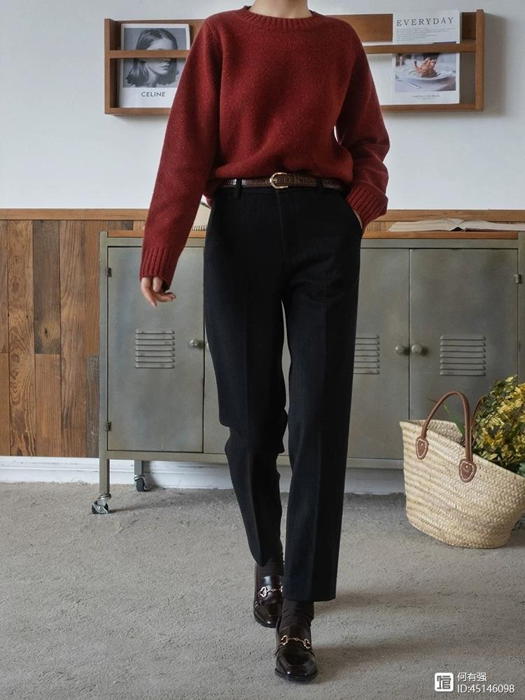 相比阔腿裤,其实我个人更偏爱这种锥形裤的设计,尤其是平时上班的话,会更加地利落飒爽,在修饰腿型方面的效果也不差,简约利落,随性百搭。
